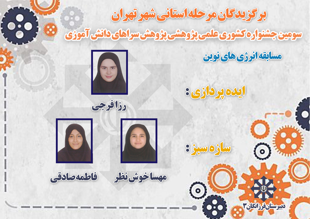 برگزیدگان مرحله استانی شهر تهران سومین جشنواره کشوری علمی پژوهشی پژوهش سراهای دانش آموزی